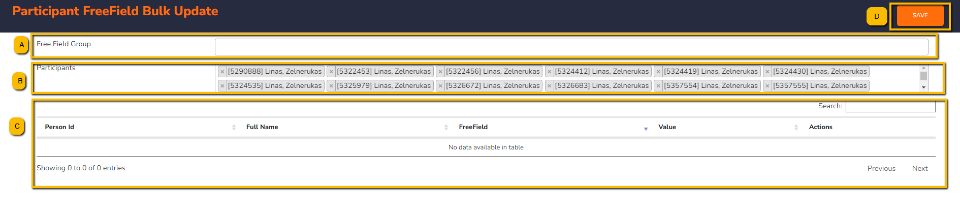 - Important Note: In case one of the participants already have a value assigned to one of the selected free field this value is going to be overwritten by the new one.
