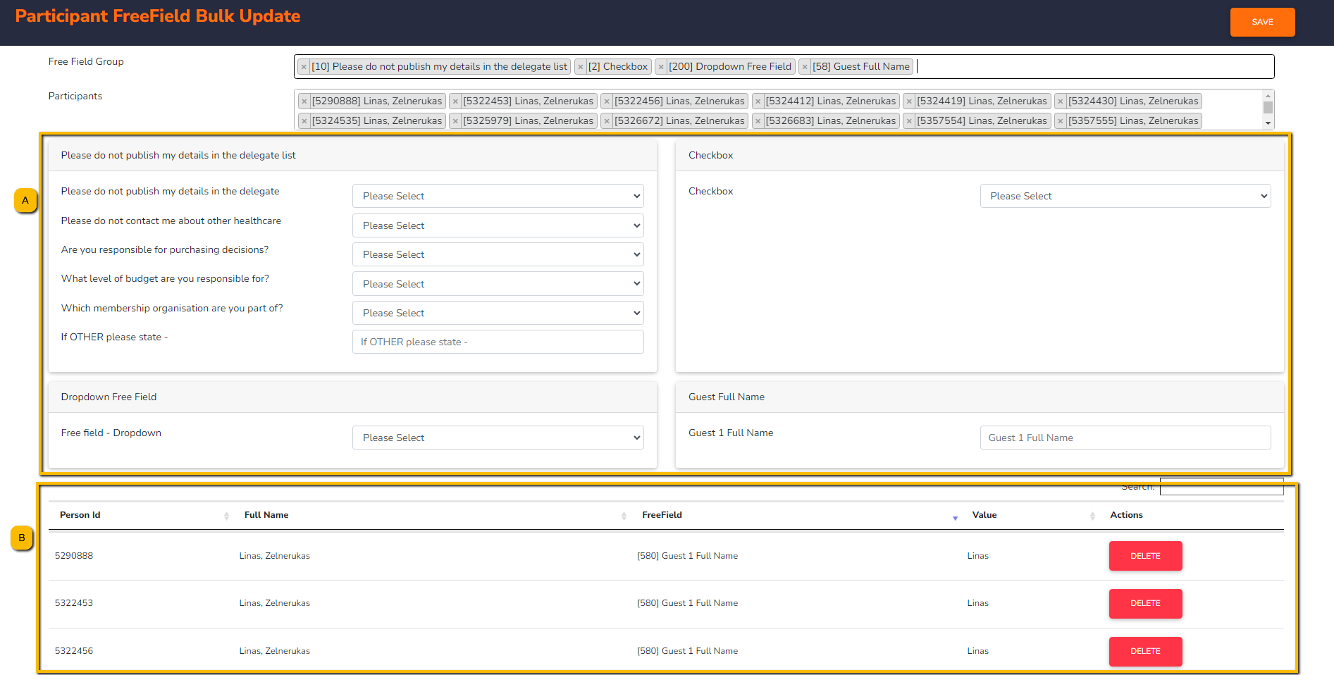 Bulk Free Fields are now available from the “View Participants” screen. This means you can add/update a Free Field in bulk to many participants. Here's how this works: