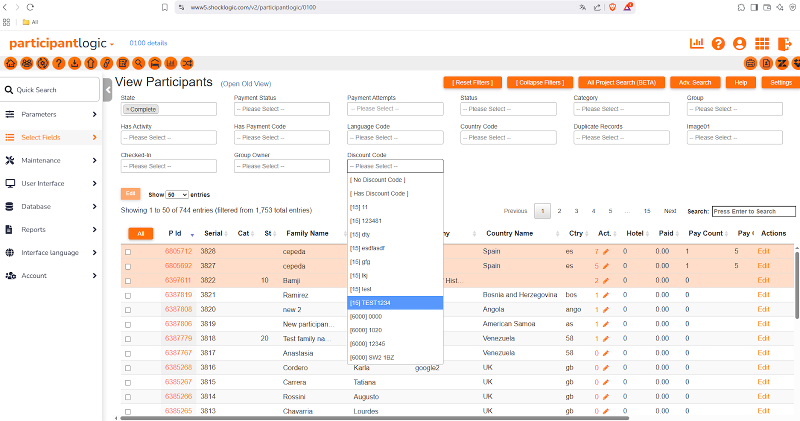 Now, in the main view, there is a new discount code filter, which allows us to perform more direct searches based on this filter.